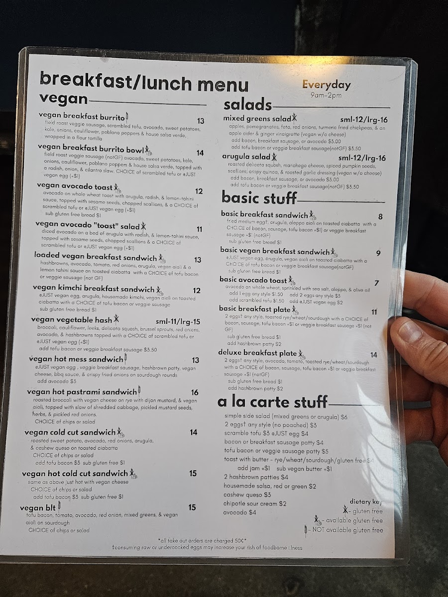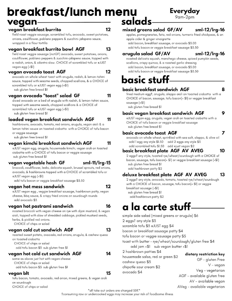 Day Time Menu - Vegan Breakfast/Lunch